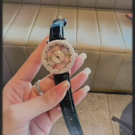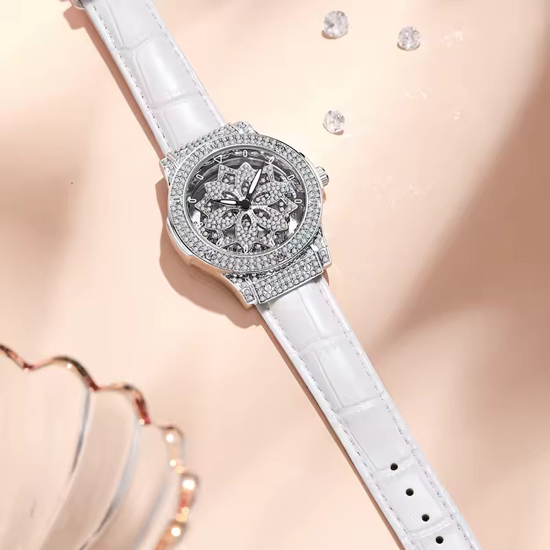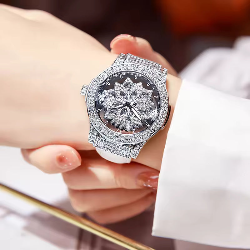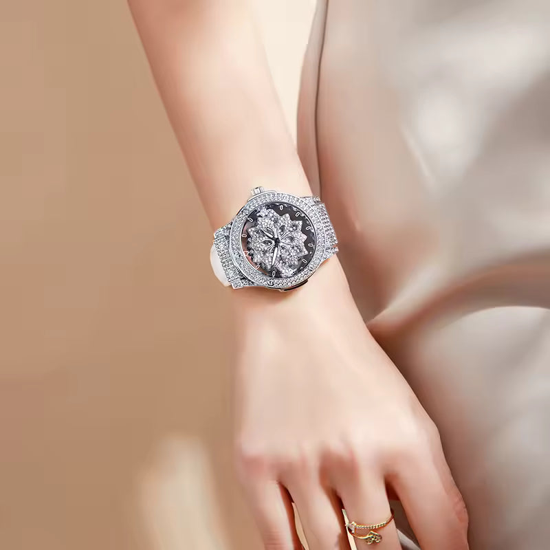 Dazzling And Fashionable Women's Quartz Watch With Colorful Rhinestone Inlay, Featuring An Alluring Rotatable Dial, Durable